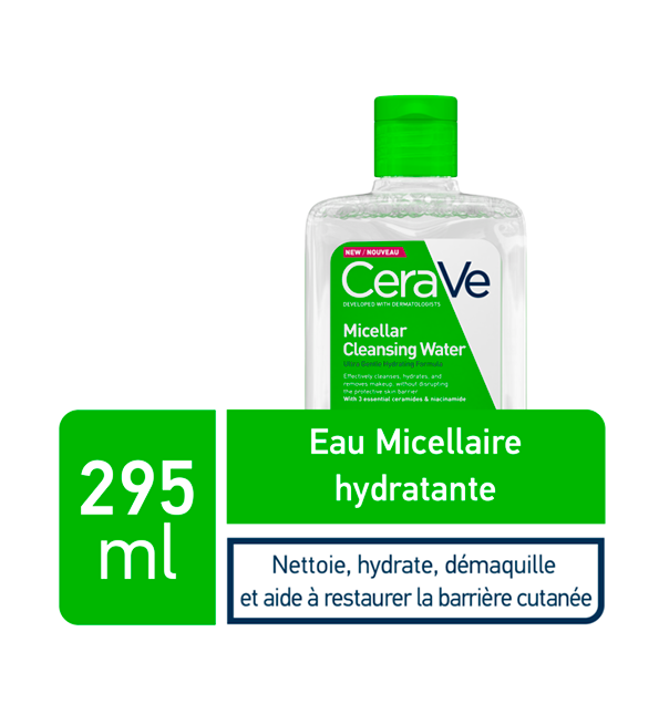 Développée avec des dermatologues, l’Eau Micellaire 3-en-1 nettoie, démaquille et hydrate en douceur sans altérer la barrière protectrice de la peau.