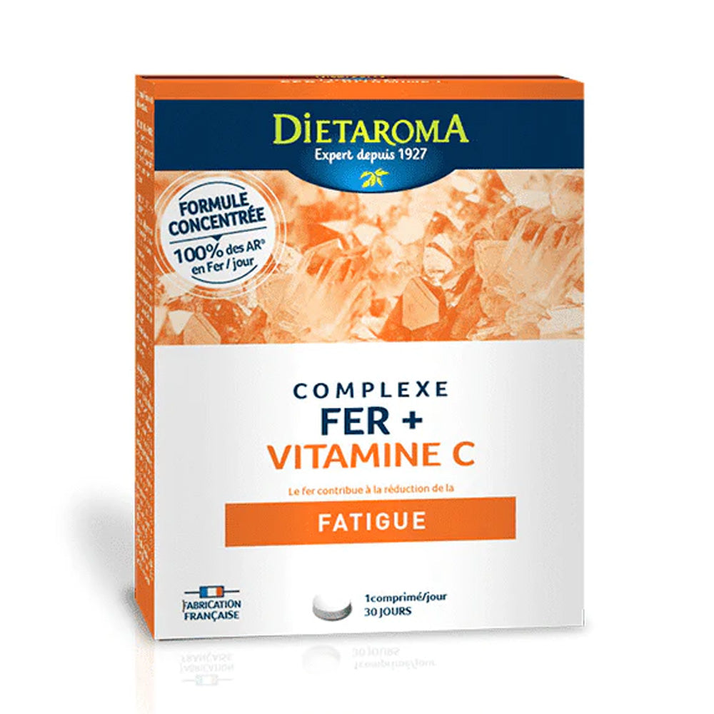 Fatigué(e) ou à certains moments de la vie d’une femme… le manque de fer peut se faire ressentir. Ayez le réflexe DIETAROMA avec le complément alimentaire au fer Complexe Fer + Vitamine C ! Notre formule complète vous aide à faire le plein de fer tout en facilitant son absorption grâce à une synergie de vitamines :