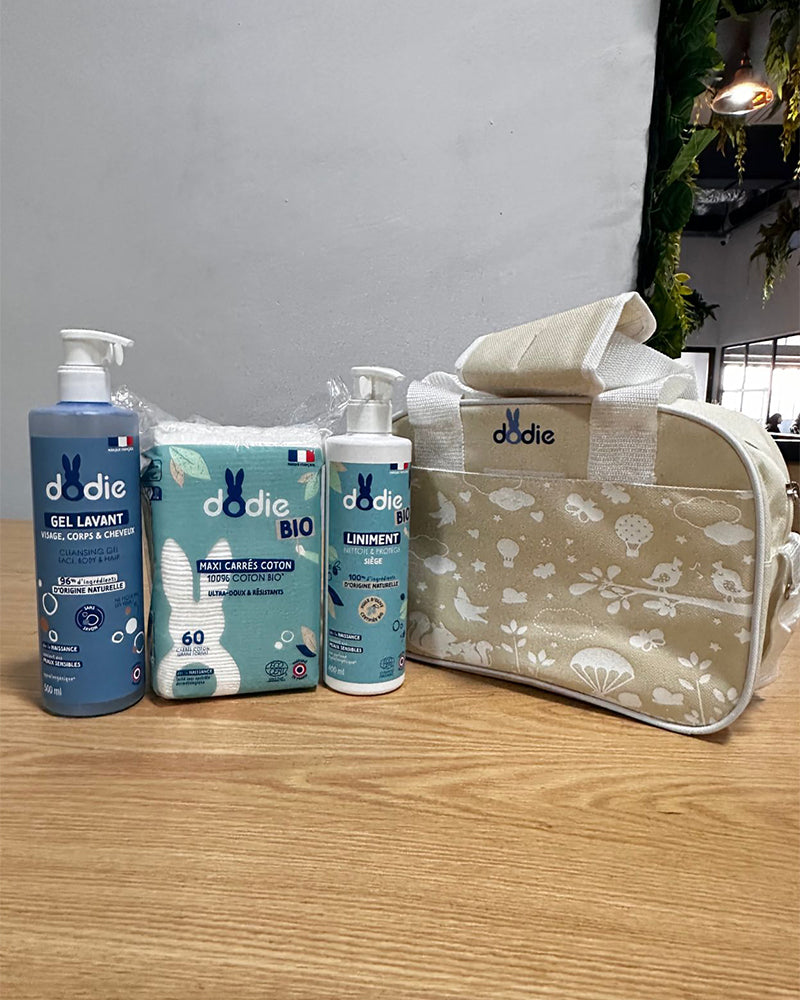عند شراء جل غسيل 500 مل، مرهم عضوي 400 مل وقطن ماكسي، استفد من حقيبة تغيير مجانية