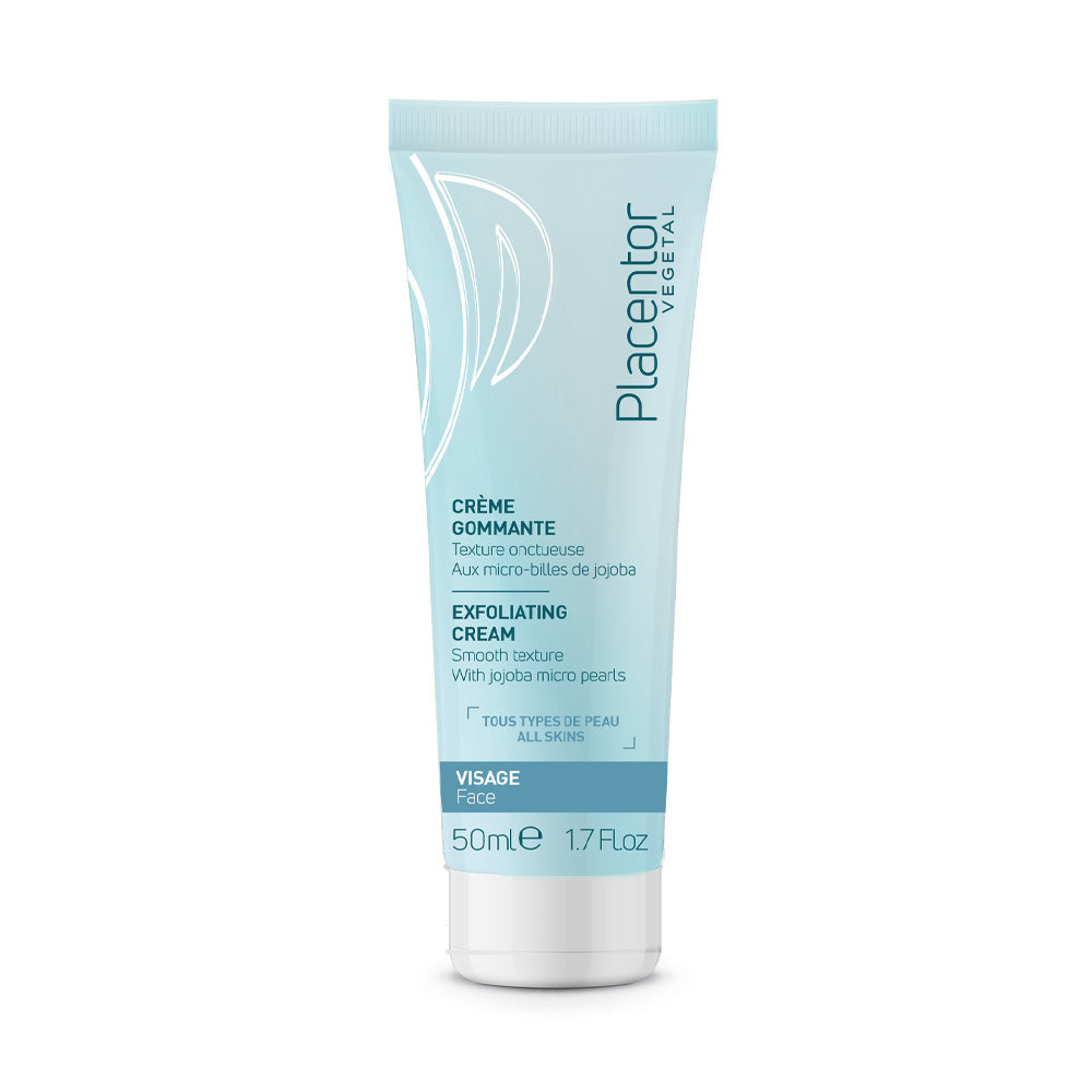 La Crème gommante douce , pour le visage et le cou, élimine les cellules mortes et favorise le renouvellement cellulaire tout en respectant la barrière cutanée.