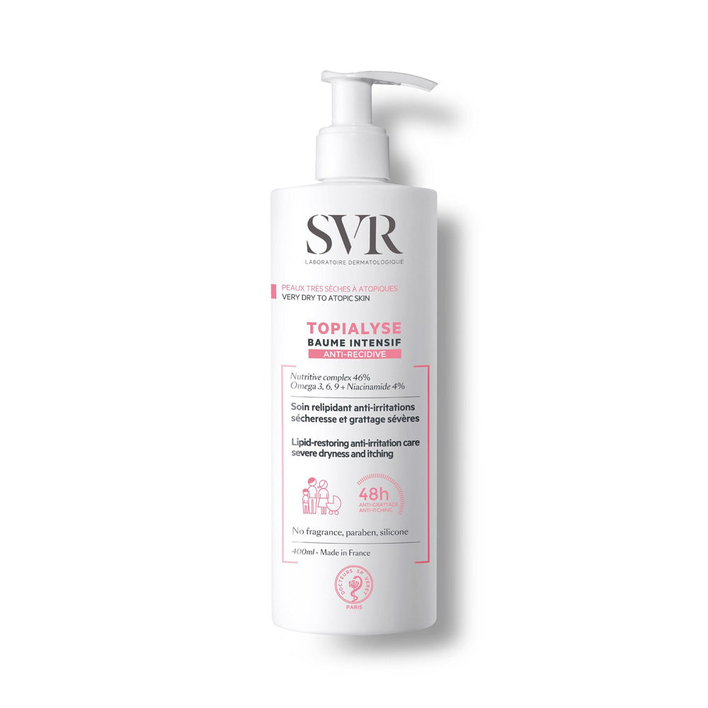 Topialyse Intensive Balm هو أول علاج لتجديد الدهون لمكافحة التهيج الشديد والجفاف والحكة مما يوفر راحة طويلة الأمد للبشرة الجافة التأتبية.