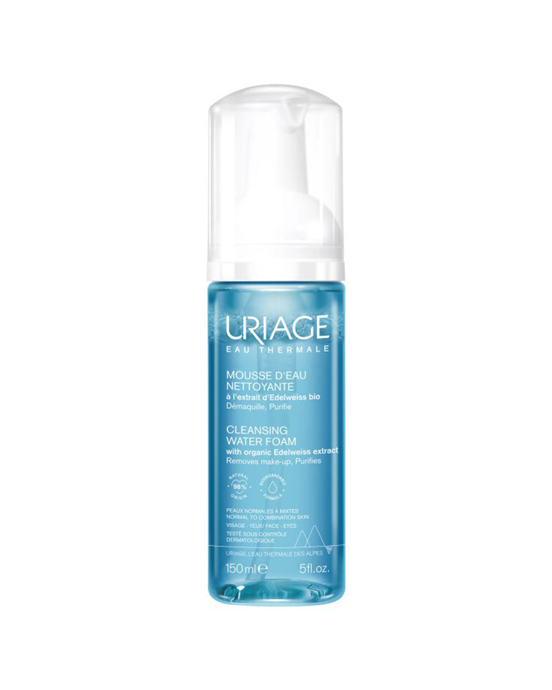 تعمل رغوة الماء المنظفة Uriage بخلاصة إديلويس العضوية على إزالة المكياج وتنقية البشرة العادية إلى المختلطة.