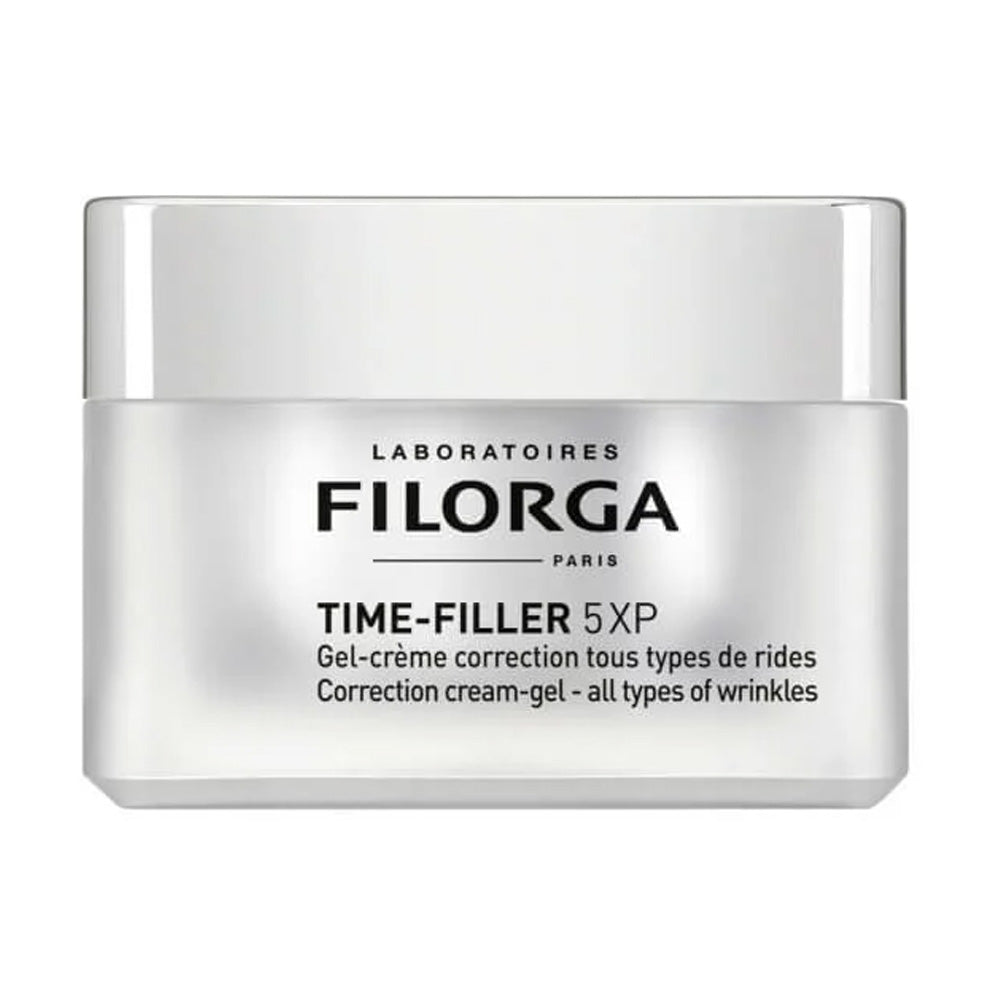 Disponible en 2 textures, sous sa forme crème [peaux normales à sèches] ou gel-crème [peaux mixtes à grasses], TIME-FILLER 5XP s’inspire de 5 expertises de médecine esthétique pour lisser les 5 types de rides, pour lisser les 5 types de rides.