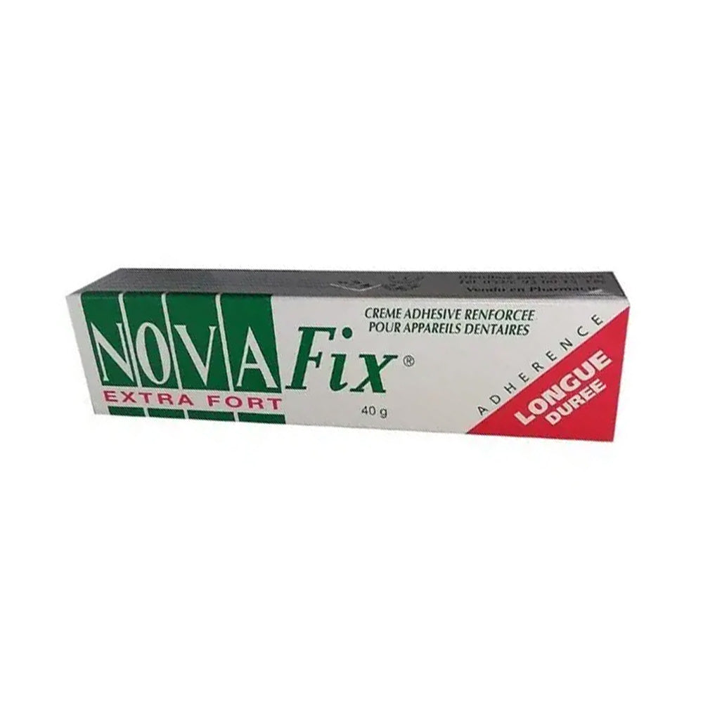 Avant l’application, la dentition doit être propre. Deux. Appliquer petites bandes Novafix sur les dents. La quantité exacte nécessaire variera en fonction de la individuellement dents. Essayez d’abord avec une petite quantité et augmenter si nécessaire, dans les applications suivantes à obtner ajustement parfait et confortable. Trois. Placer la prothèse dans sa position naturelle et appuyer fermement. Avril. Fermer hermétiquement le tube après chaque application. Peut. Si la bouche sèche, appliquer la crème sur les prothèses adhésives humides et la bouche Immédiatement avant le placement. ALLERGIE AU LATEX Ne contient pas de latex.