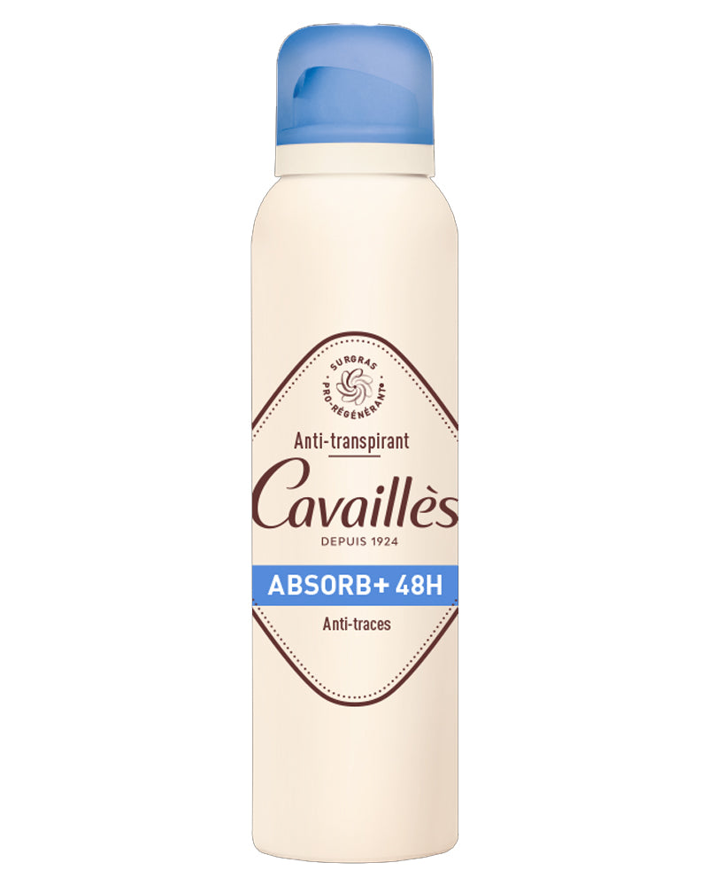 Découvrez le déodorant Absorb+ Efficacité 48H de Cavaillès. Sa technologie absorbe 5 fois plus d’humidité que le talc. Résultat : elle agit même lors des pics de transpiration pour prévenir l’apparition d’odeurs et d’auréoles tout au long de la journée.