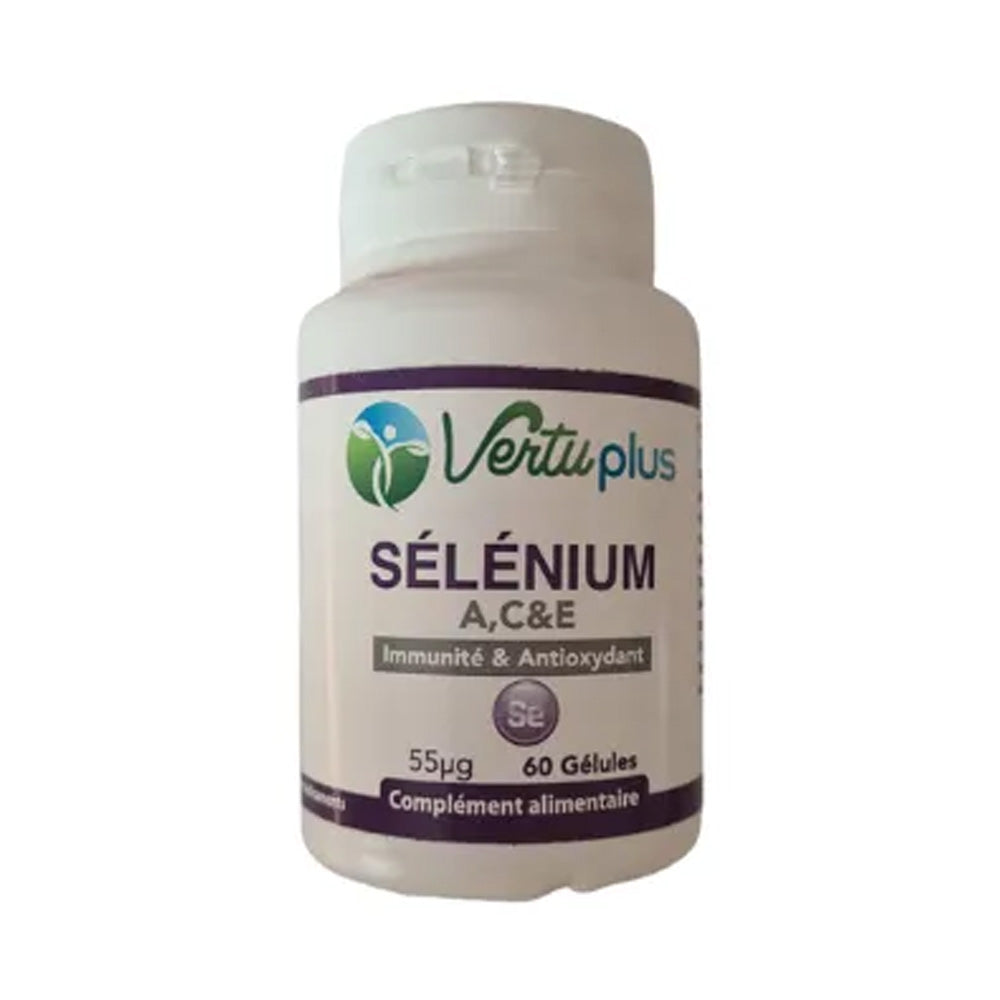 Ce produit est un complément alimentaire à base de sélénium, qui contient des vitamines A, C et E. Il est présenté sous forme de 60 gélules.